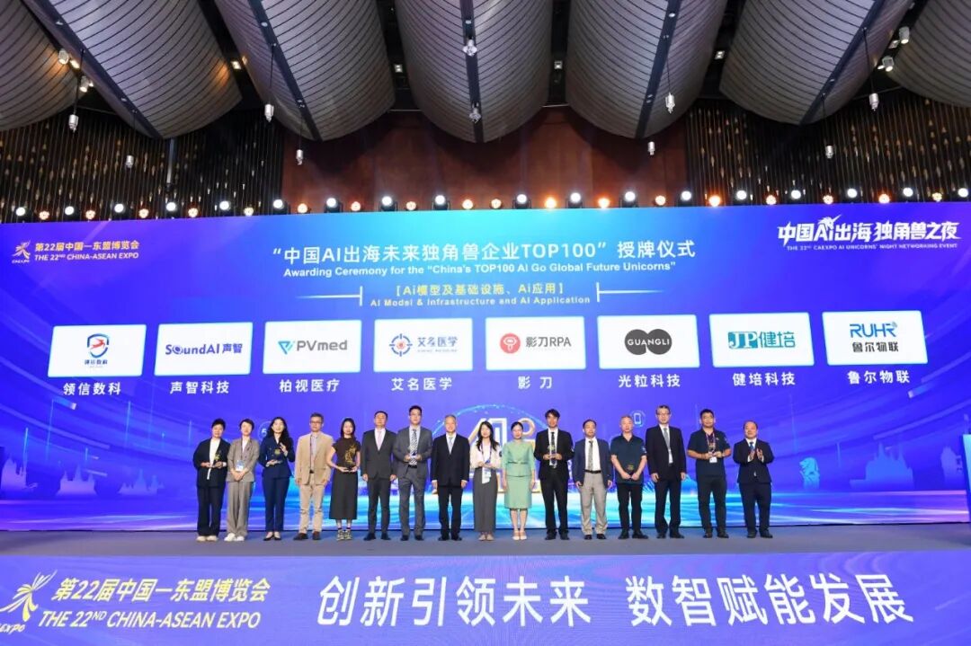 2025年9月17日-21日,第22屆中國?東盟博覽會(以下簡稱“東博會”)在廣西南寧隆重舉行。在東博會AI出海獨角獸之夜上,由中國投資發展促進會、中國人工智能百人會、中國-東盟博覽會秘書處、微鏈首次聯合發布《中國AI出海未來獨角獸企業TOP100榜單》。 健培科技 作為醫療人工智能領域的創新引領者,成功入選“2025中國AI出海未來獨角獸企業TOP100榜單” ,并與全國的百家優秀AI企業共同見證和參與了盛典。